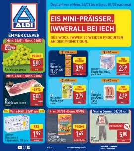 Découvrez toutes les semaines les offres de votre magasin ALDI préféré grâce à Biscuit. Vous êtes à la recherche de promos et de réductions ? Retrouvez tous les bons plans sur le site et l'application Biscuit, tous les dépliants disponibles avec le plein de promos ! Profitez pour revoir les dépliants ALDI de la semaine passée, des dépliants actuels et ceux de la semaine prochaine. Avec 18 magasins au Luxembourg, des produits frais et une large gamme de produit : boissons alcoolisées, boissons non alcoolisées, produits pour bébés, pâtisserie et cuisine, produits à tartiner, conserves, produits cosmétiques et soins, aliments pour animaux, ménage, glace, plats préparés, café, thé, cacao, produits laitiers et fromages, pâtes et riz, collations et sucreries, végétarien et végétalien, viande, légumes frais, fruits frais et de saison, pain et pâtisserie, fleurs fraîches, poisson et fruits de mer.