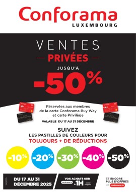 Retrouvez toutes les semaines les dernières offres de votre magasin Conforama Luxembourg. Découvrez les offres et promotions de votre magasin Conforama à Strassen - Luxembourg grâce à la plateforme Biscuit et ne manquez aucun bon plans parmi tous les produits disponibles en magasin et sur le site internet : canapé salon séjour, bureau rangement, chambre literie, cuisine salle de bain, décoration textile, enfant bébé, gros électroménager, petit électroménager, TV Son multimédia, Jardin loisirs sport et tout autre décorations. Retrouvez des produits pour aménager votre intérieur mais aussi votre extérieur. Des produits exclusifs et nouveau à ne pas manquer sur le site de Conforama Luxembourg et sur l'application Biscuit.